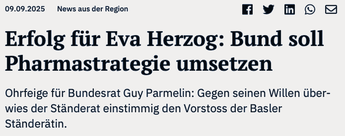 Für mich hat die Session mit einem Paukenschlag begonnen: Gleich am ersten Tag hat der Ständerat gegen den Antrag des Bundesrats meine Motion für die Stärkung des Pharma- und Biotechnologie-Standorts überwiesen – und das mit 45 zu 0 Stimmen (Debatte). Ich freue mich sehr, dass meine Kolleginnen und Kollegen mein Anliegen teilen: Angesichts der geopolitischen Umwälzungen brauchen wir für diese wichtige Branche unbedingt eine Strategie.