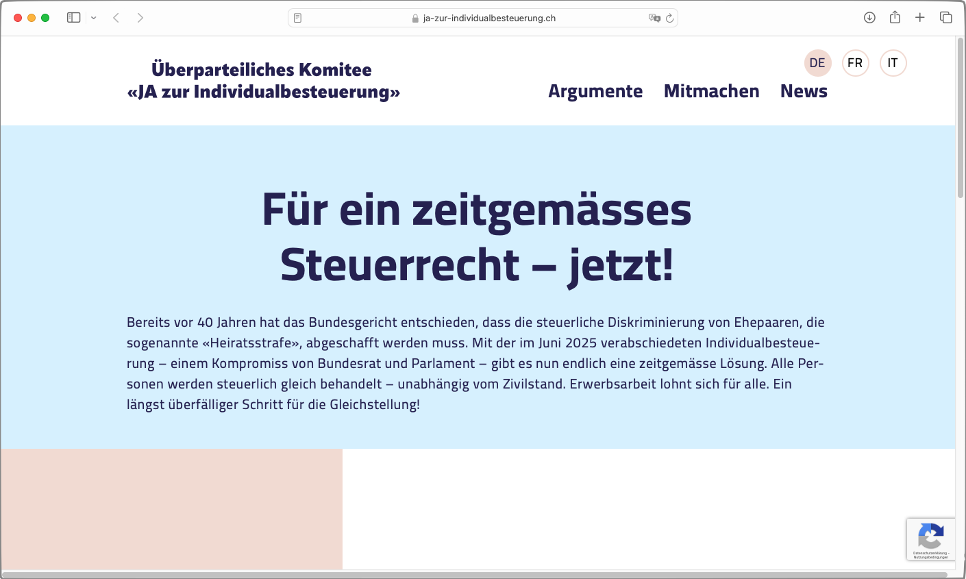 Verbesserungen für Frauenanliegen bringen eine Motion für schwangere Frauen am Arbeitsplatz und das Bundesgesetz über den Erwerbsersatz (Debatte). Damit ist auch eine Motion von mir erfüllt, die gleiche maximale Tagessätze bei Militärdienst und Mutterschaft fordert. Ausserdem haben wir versucht, das Kantonsreferendum gegen die Individualbesteuerung zu verhindern, was nicht gelungen ist. So sammeln wir nun Kräfte und Geld für die Volksabstimmung. Diese findet voraussichtlich am 8. März 2026 statt – dem internationalen Tag der Frau. Unterstützerinnen und Unterstützer dürfen sich gerne melden! Ich bin Co-Präsidentin des überparteilichen Ja-Komitees, welches schon eine Website lanciert hat sowie einen Rechner, der zeigt, wie sich die Reform auswirkt.