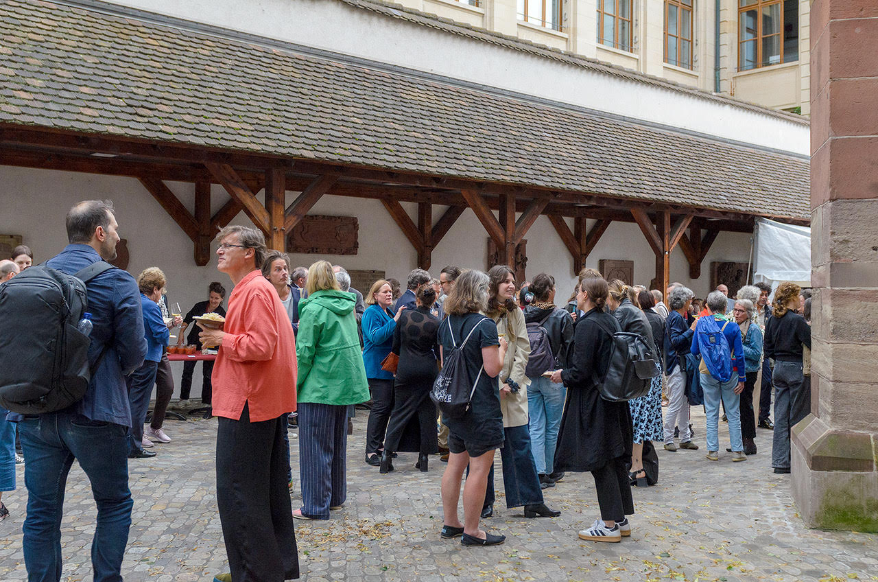 Danke schön auch an die Stiftungen, die das Literaturhaus in den letzten 25 Jahren mit Projektbeiträgen unterstützt haben. Es sind mit anderen die Ernst-Göhner-Stiftung, Pro Helvetia und die Binding-Stiftung. Weiter geht es mit Dank an all die Privatpersonen, die das Literaturhaus in den letzten Jahren grosszügig unterstützt haben. Allen voran Jeanne und Hanspeter Lüdin. Ein spezieller Dank auch an John Schmid. Auch all den Gönner:innen und Mitgliedern des Vereins LiteraturBasel gebührt Dank. Wer noch nicht Mitglied oder Gönner:in ist... das ist jederzeit möglich! Und schliesslich danke sehr für den Beitrag an die Jubiläumsveranstaltung an die Pro Litteris-Stiftung und den Kanton Basel-Stadt. Für den Beitrag an die Jubiläumspublikation danke ich dem Swisslos-Fonds BS.